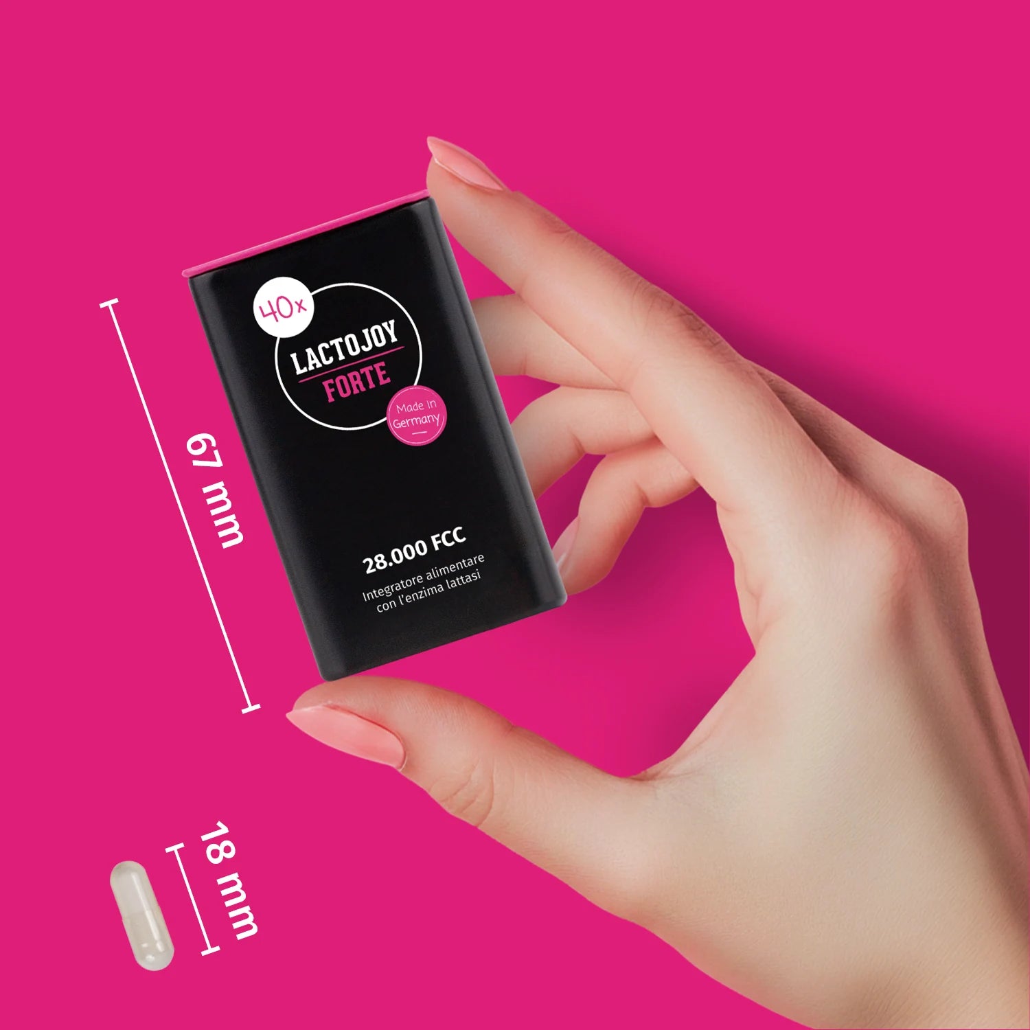 When creating LactoJoy lactase capsules, we focused not only on effectiveness but also on design and usability. That's why our capsules are small and easy to swallow, despite their high dosage. They are tasteless and completely free from artificial aromas, making them pleasant to take anytime. But quality doesn't stop with the capsule itself. Our stylish packaging makes a statement: Lactose intolerance isn't an illness, but it's actually rather normal. It's simply a part of life for many people, but it doesn't have to be a limitation. With LactoJoy, you'll never feel like you're carrying around outdated medication, but a smart everyday companion.